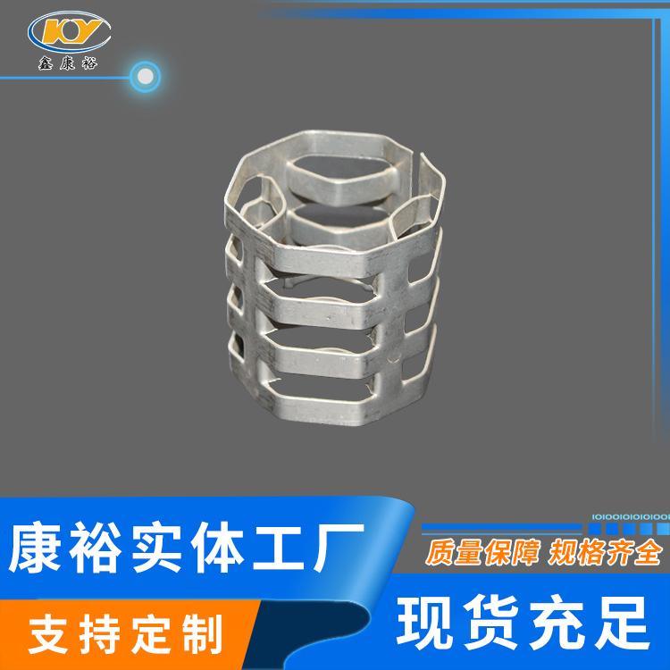 康裕金屬八四內(nèi)弧環(huán)類(lèi)似花環(huán)開(kāi)關(guān)的金屬填料,也稱(chēng)麥勒環(huán)填料。它的特點(diǎn)是環(huán)壁開(kāi)敞面積大,所以具有通量大、阻力小和傳質(zhì)效率高等特點(diǎn)。
